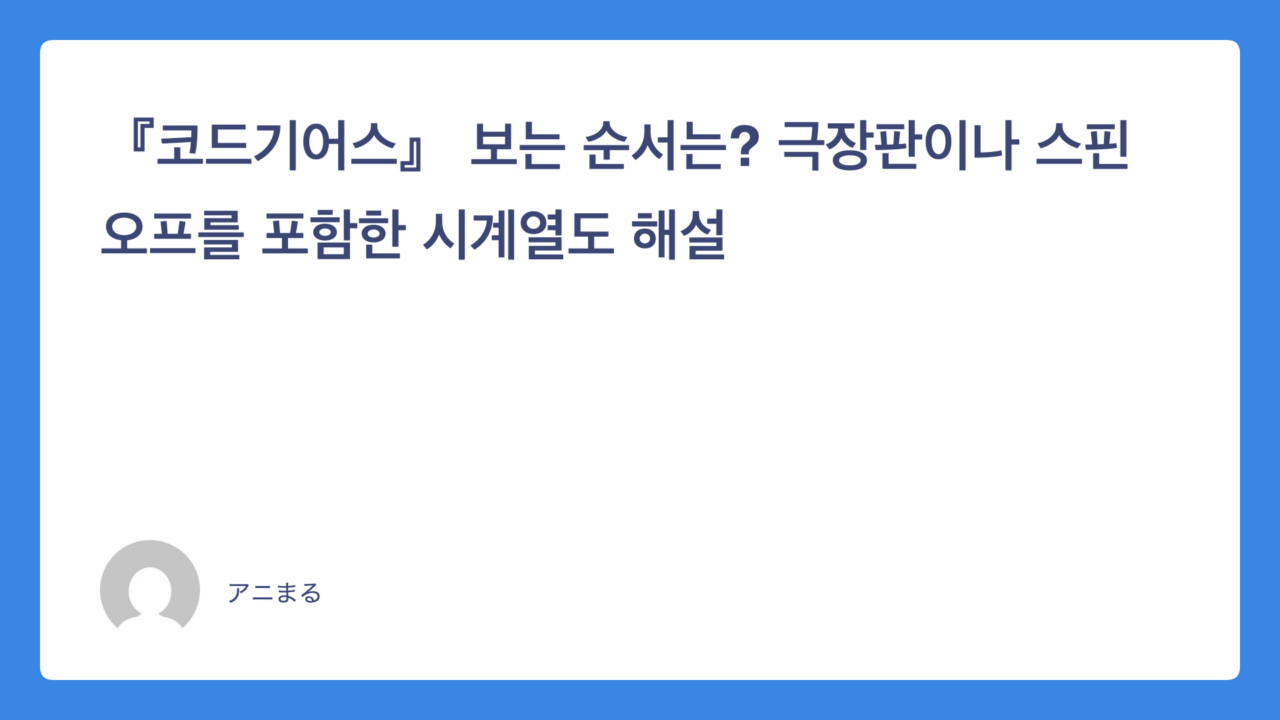 이번에는 그런 『코드기어스』에 대해 줄거리나 화수, 코드기어스 보는 순서, 시청 가능한 서비스 등을 정리하여 소개해 드리겠습니다!