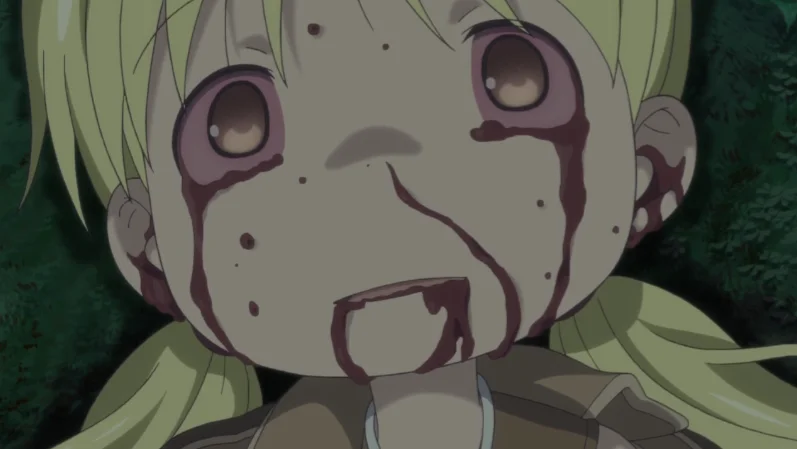 「全身から出血」ってどういうことなのかと思ったけど、傷口から出血しまくってたし、目は充血して血の涙が流れてるし、口や鼻からも出血。結核みたいに血を吐いてるリコは、とても見てられないレベルだった。